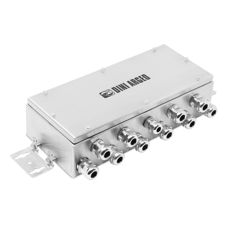 Junction box fitted with electronic board for junction and equalisation of up to 10 load cells. Particularly suitable for weight bridges, thanks to the Surger Arresters against electric discharges and disturbances. Case suitable for harsh environments, with metallic cable glands and grounding. Terminal boards with a screw for easing the connection of the load cells and the signal adjustment trimmer, for an accurate and reliable equalisation.