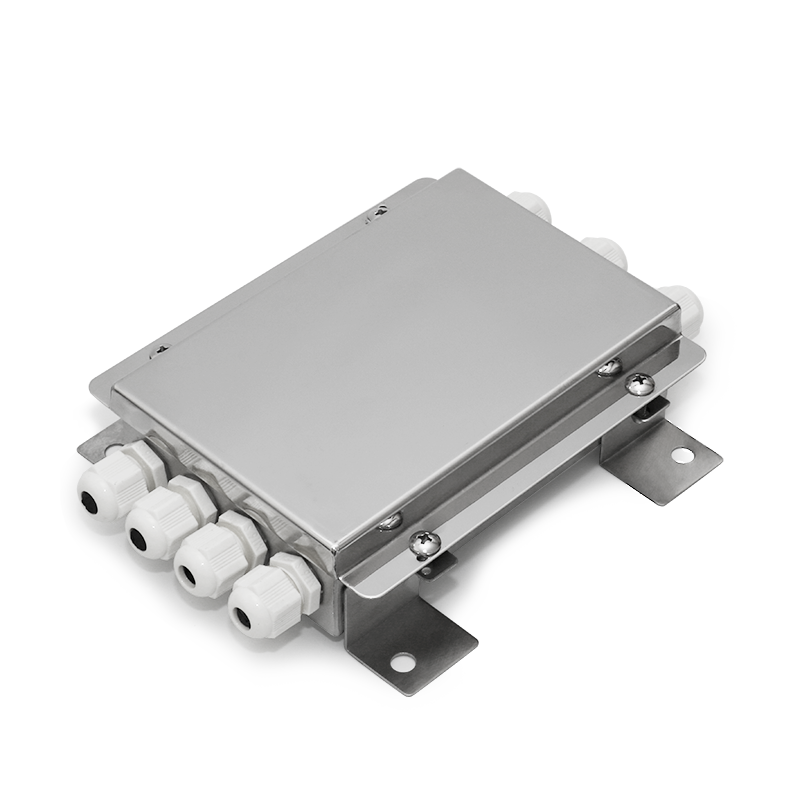 Stainless steel junction box with IP65 protection from water and dust, and fitted with electronic board for junction and equalisation of 4 or 6 load cells. Terminal board with screw for easing the connection of the load cells and the signal adjustment trimmer, for an accurate and reliable equalisation.